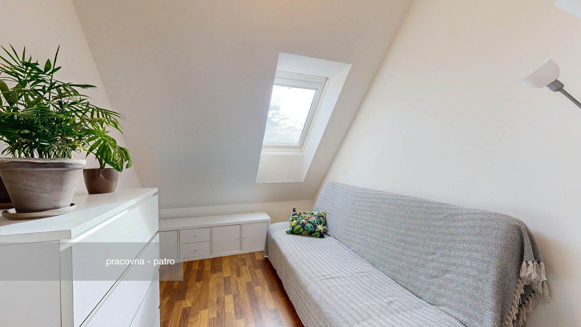 U obývacího pokoje je balkon o výměře 2,87 m2. Okna v obývacím pokoji jsou vybavena předokenními elektricky ovládanými žaluziemi. Dále je zde jídelní kout a velký kuchyňský kout s velmi pěknou moderní kuchyňskou linkou do tvaru písmene U. V kuchyňské lince je osazena myčka, sporák, trouba, mikrovlnná trouba a digestoř s odtahem ven. Z obývacího pokoje také vedou pěkné, na zakázku vyrobené, schody z kovu a dřeva, které vedou do patra. V patře jsou další dva pokoje: dětský pokoj (nyní zařízený jako pracovna) a ložnice. Součástí ceny prodeje jsou: kuchyňská linka včetně spotřebičů (vyjma lednice a mrazáku), nábytek v ložnici a vybavení koupelny (vyjma pračky). Ostatní nábytek bude z bytu odvezen.