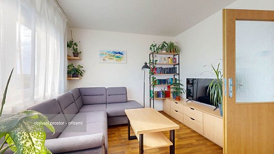 Cihlový bytový dům, ve kterém se byt nachází, je postaven v klidné lokalitě. Přímo u domu jsou 2 parkovací stání, která patří k bytu a jsou tedy součástí prodeje bytu. Byt je v 2. patře, je v osobním vlastnictví a jeho podlahová plocha je 63,4 m2. K bytu také náleží sklepní kóje o výměře 1,7 m2, která je umístěná v domě. Okna bytu jsou situována na jihovýchod.