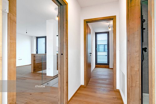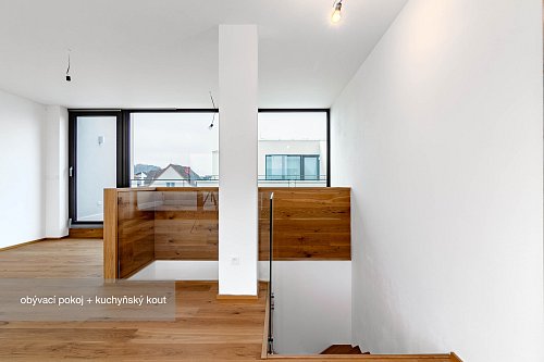 - v obytných místnostech bude použita kvalitní dubová podlaha s kombinací velkoformátové dlažby