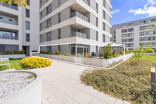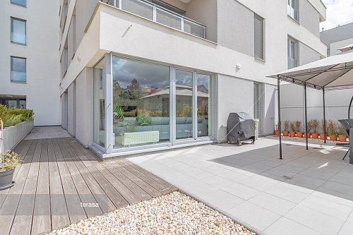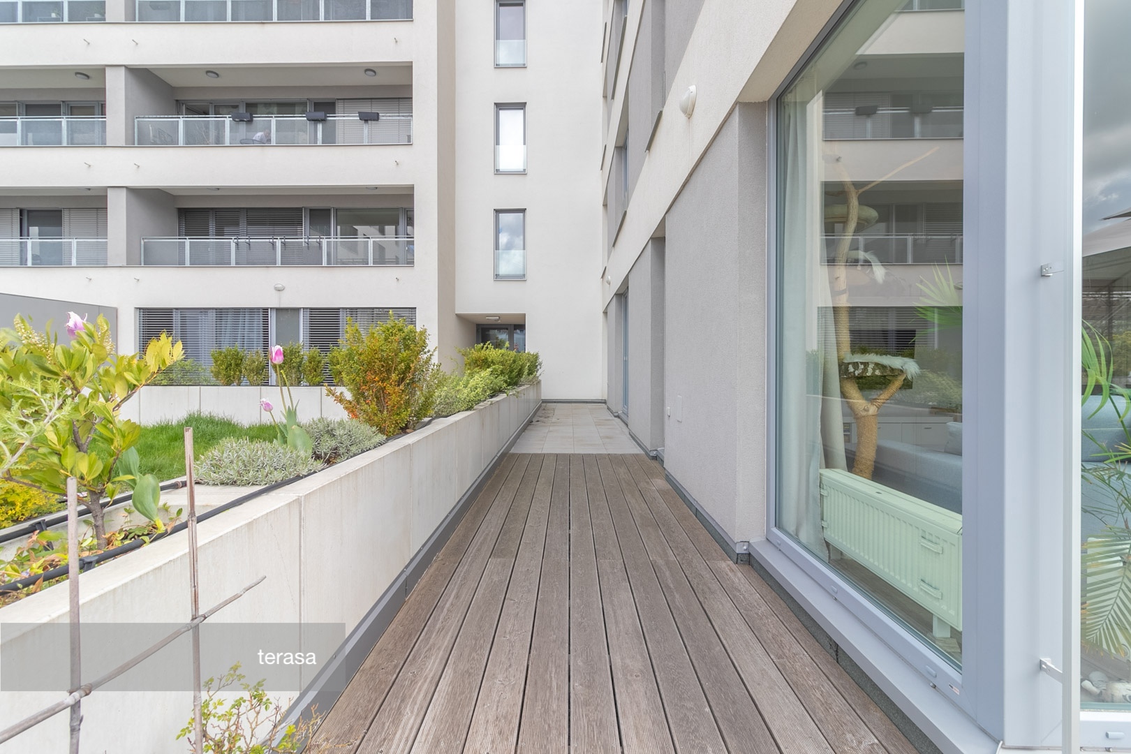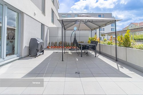 Byt se nachází v přízemí nového bytového komplexu doslova pár metrů od Chodského náměstí. Velkou předností je opravdu velká terasa, která je přístupná z každé místnosti. Oceníte i garážové stání, kde si dveře rozhodně neodřete. Služebna Policie ČR hned ve vedlejším domě? - záruka bezpečí a klidu.