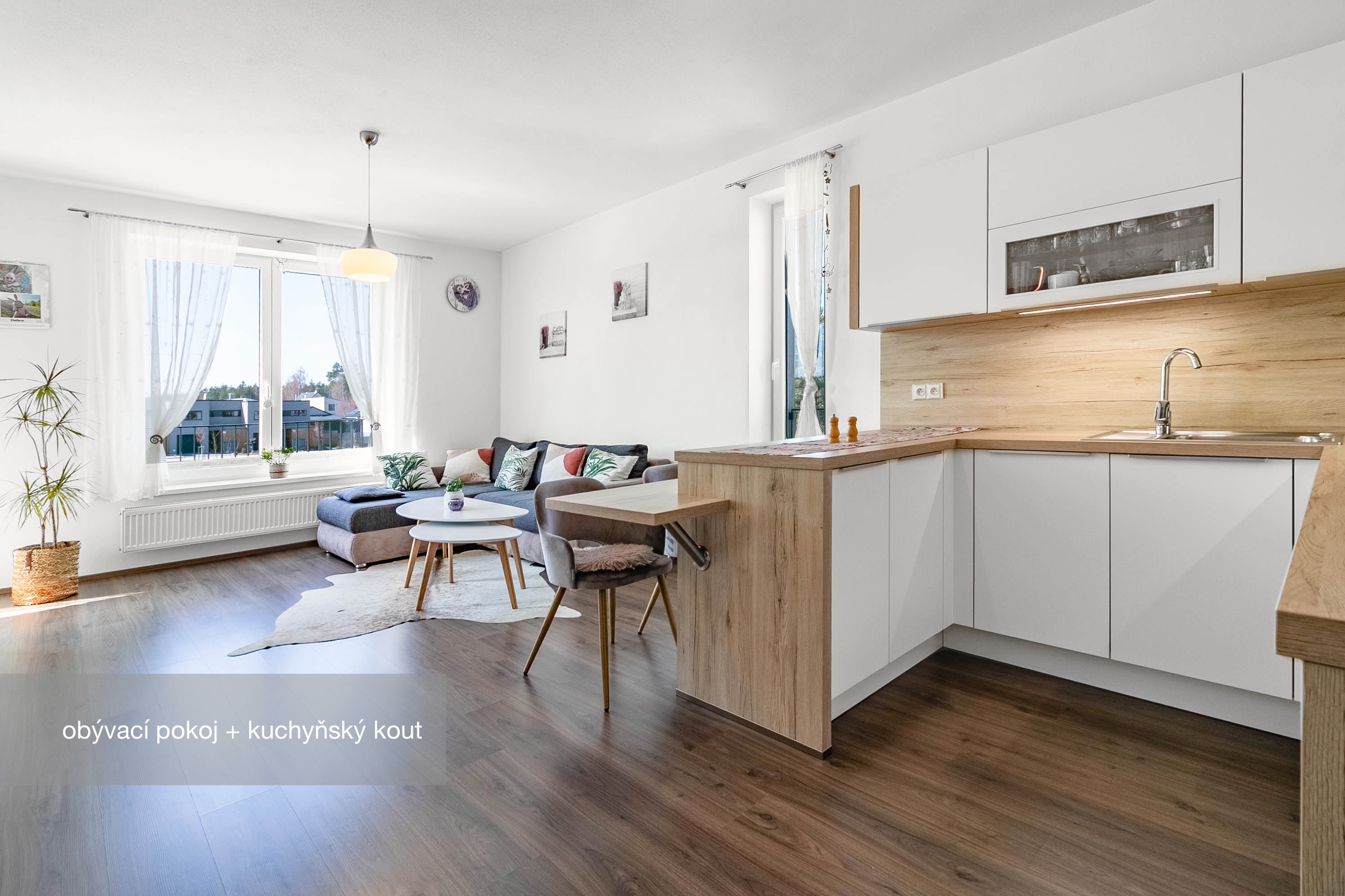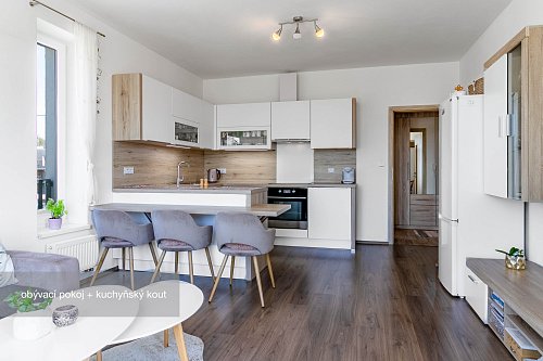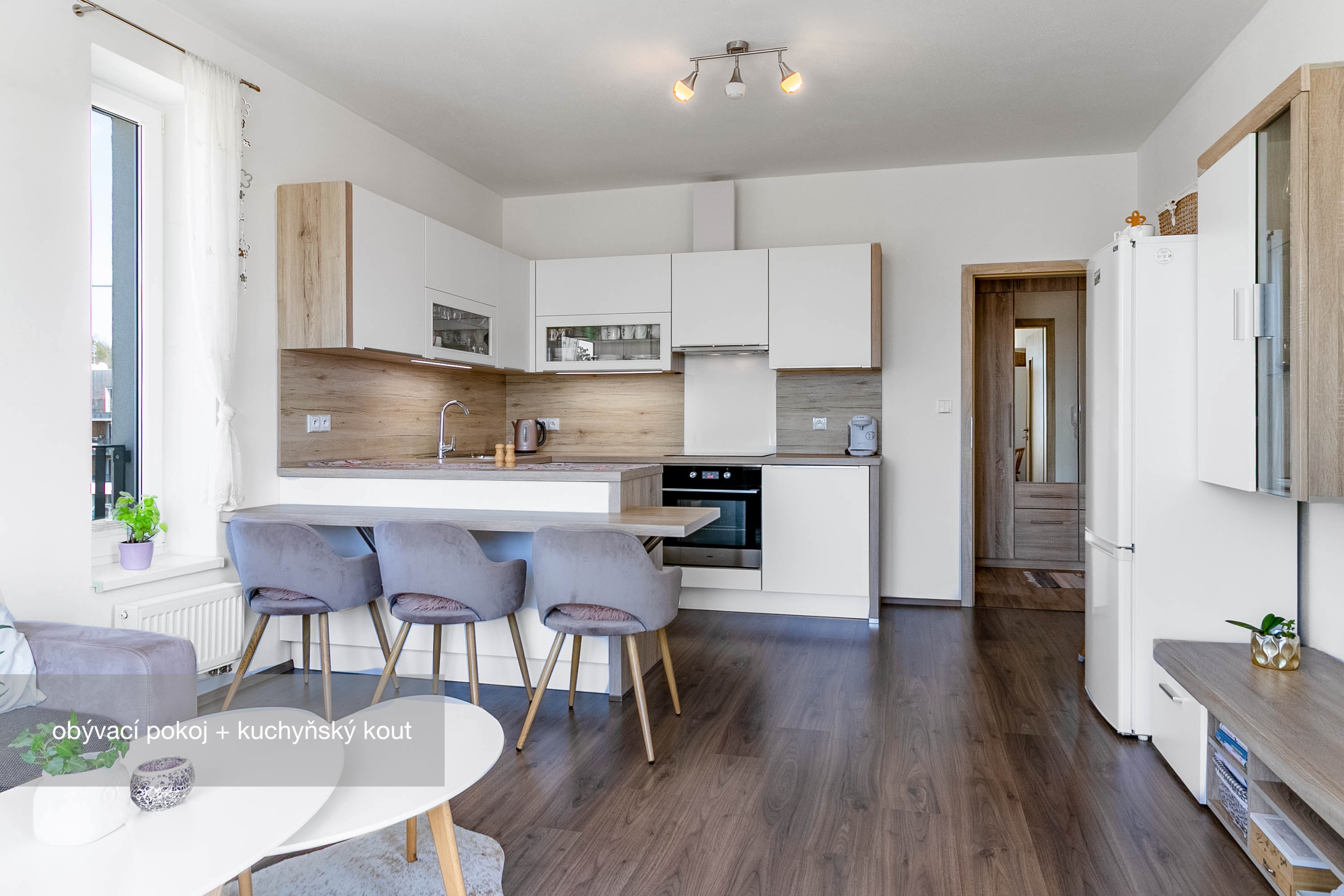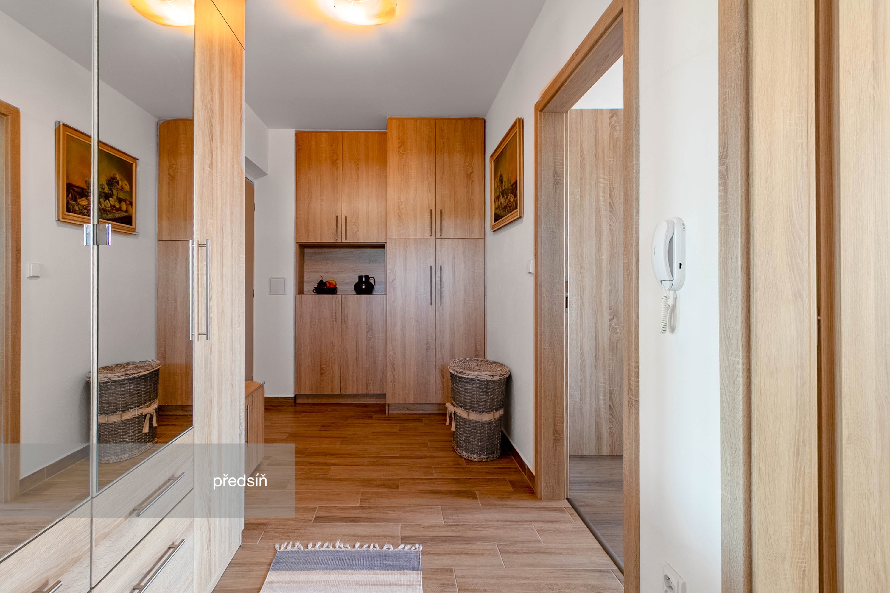 Bytová jednotka o výměře 56 m² se nachází ve 2. nadzemním podlaží. Dispozičně je řešena jako 2+kk a tvoří ji vstupní chodba, prostorný obývací pokoj s kuchyňským koutem, samostatná ložnice a koupelna s WC. K bytu náleží také lodžie o velikosti 4 m², a dále praktická komora o výměře 1,4 m² nacházející se na patře, pár kroků od vchodu do bytu. Byt se prodává kompletně vybavený – součástí prodeje je veškerý nábytek a vybavení zachycené na fotografiích v inzerci.